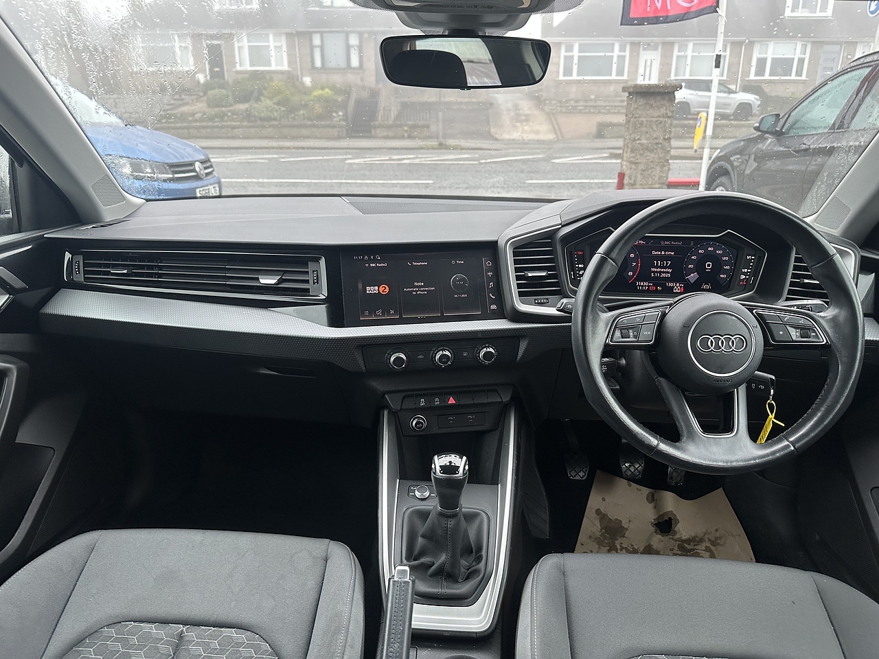 This 2023 Audi A1 TFSI Sport boasts a full dealership service history, ensuring excellent provenance for this one owner vehicle. It features a 1.0 litre Euro 6 petrol engine and comes with a 6 month warranty and 12 months MOT provided on purchase. The vehicle has a clear history check and its last service was completed on 2026-01-13 at 31317 miles. Notable features include light and rain sensors, rear parking sensors for easier manoeuvring, and a Bluetooth interface for seamless connectivity.